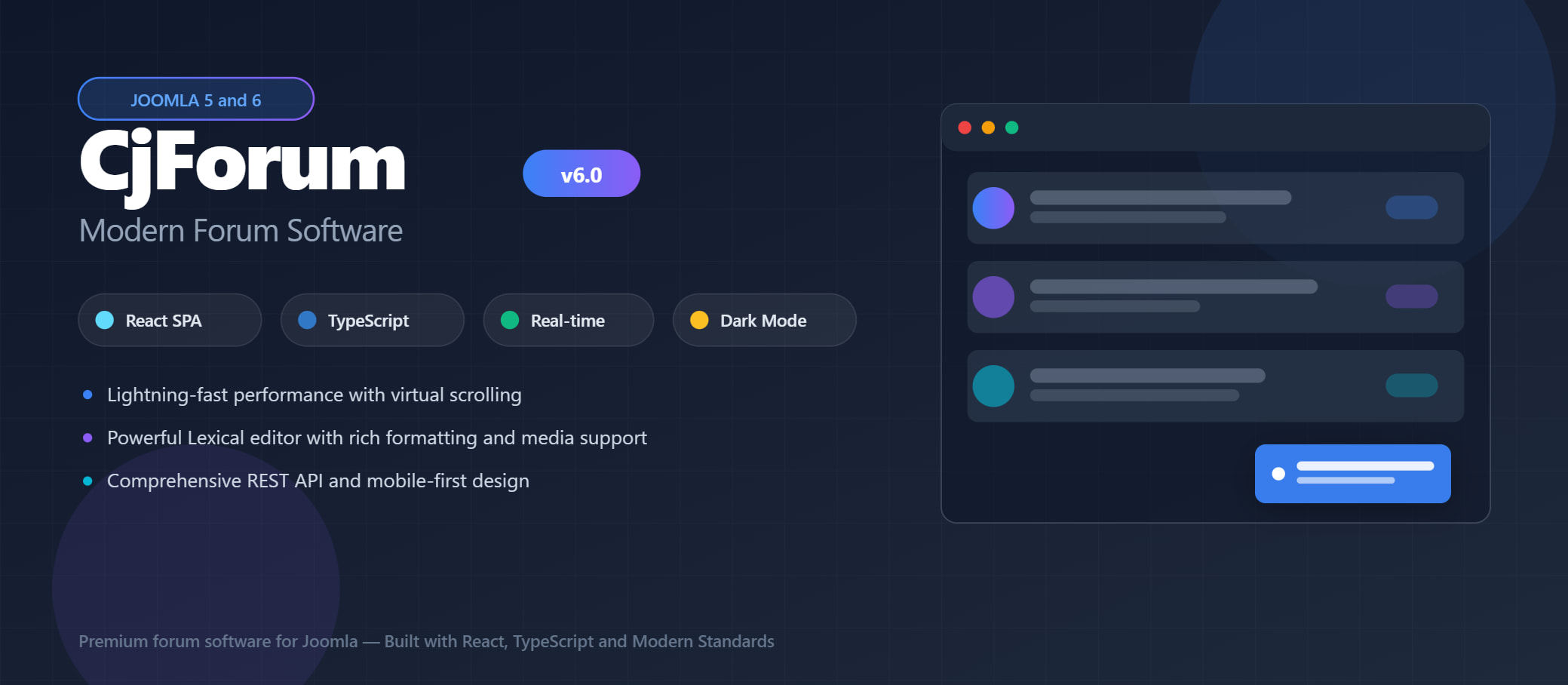 CjForum is one of the most popular and top-rated extensions on Joomla! Extension Directory.