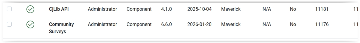 I've been trying to update Community Surveys via the Joomla update feature as it shows there was an update to v6.5.6. It would not do it from the update function, so I came to the site, and saw the latest was 6.6.0.