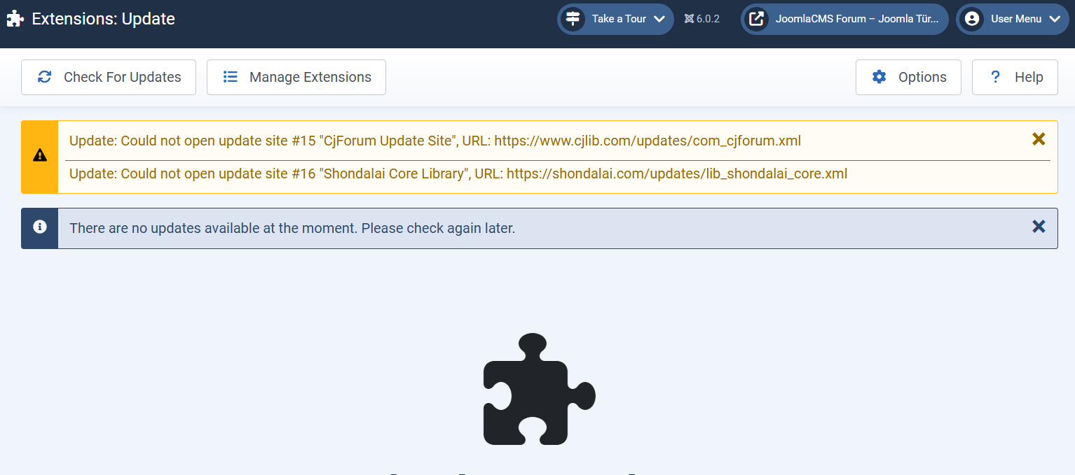 The 6.0.10 update is visible on the download page. However, I'm using Joomla 6 and the new version update isn't arriving. The update site, https://www.cjlib.com/updates/com_cjforum.xml, is inaccessible.